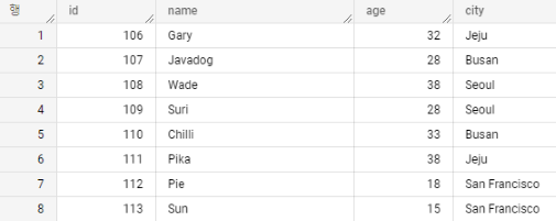 id가 106~108인 유저 정보가 두 번씩 출력되었다.