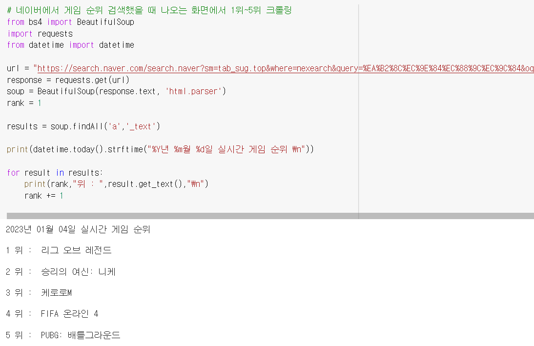 실시간 검색어는 아니지만 크롤링 실습을 할 수 있었다.